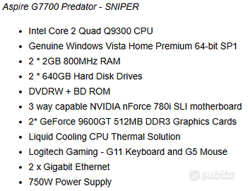 Vendo splendido blocco hardware smontato direttamente da un PC da gaming Acer Predator G7700 (Sniper) perché a me interessa solo il case.