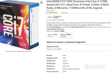 Potrei anche vendere separatamente e/o accettare proposte. NO SCAMBI. Bundle totalmente funzionante e performante, mai overclock solo lavoro d'ufficio Allego le immagini dei prodotti con le loro specifiche dettagliate del produttore, per info o altre foto non esitate a contattarmi. L'annuncio si riferisce a: Scheda madre - mobo: maximus ix code (con scatolo completo di accessori e manuale) CPU - processore - i7 7700k soket lga 1151, 4.2ghz (completo di scatolo) Ram - Corsair vengeance RGB 16 gb (2x8gb) ddr4 3466Mhz c16 Dissipatore per CPU 240 mm - Corsair Hydro series H100i v2 sono aperto ad offerte. Non esitate a contattarmi per info o foto degli articoli e scatole.