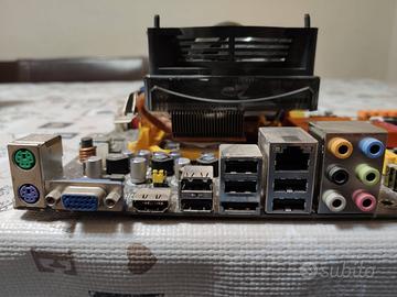 Vendo per upgrade pc scheda madre ECS A780GM-A con scheda video integrata, completa di processore AMD Athloln 64X2 5200+ 2.70Ghz e 4GB di RAM. Tutti i componenti sono in perfette condizioni sia di funzionamento che estetiche. La configurazione è adatta per utilizzo ufficio, DAD e pacchetto office in generale. Non adatta per il gaming o video e photo editing. Possibilità di fornire case alimentatore e HD