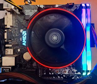 Processore: Ryzen 3 1200 completo di dissipatore originale AMD con bordo illuminato di rosso e logo AMD illuminato di bianco (come da foto);