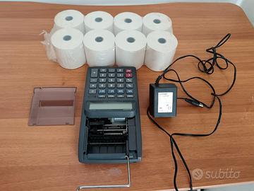 Calcolatrice con doppia alimentazione, elettrica e vano pile. Perfetta e funzionante, con alimentatore. Offro anche 6 rotoli di carta di ricambio.