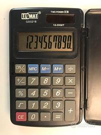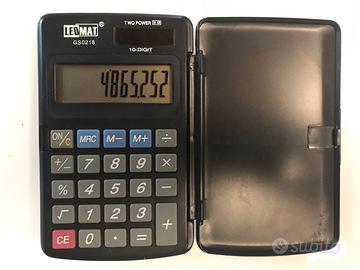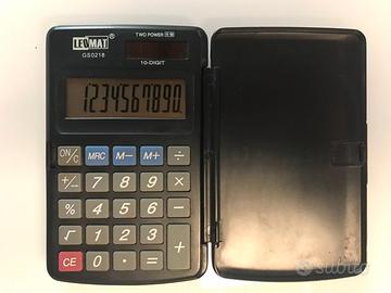 Calcolatrice tascabile LEOMAT GS0218. Con chiusura a libretto e display a 10 cifre - funzioni di autospegnimento, percentuale, radice quadrata. Usata ma perfettamente funzionante.