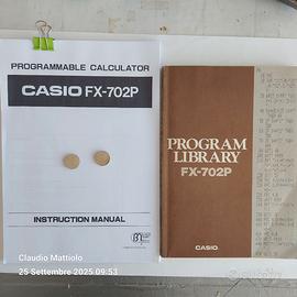 calcolatrice programmabile tascabile in linguaggio BASIC marca CASIO mod. FX-702P praticamente nuova, senza alcun segno o graffio con imballaggi originali, con custodia in similpelle, completa di manuale di istruzione e libreria di esercizi tutti in inglese, di stampante a batteria FP-10 con 4 rotoli di carta originale, di interfaccia FA-2 completa di custodia in similpelle. di 2 pile a bottone CR2032 parzialmente usate, contatti batterie privi di qualsiasi ossidazione in perfetta condizione