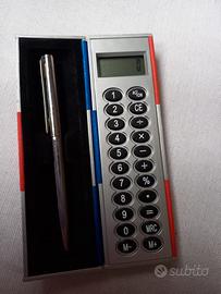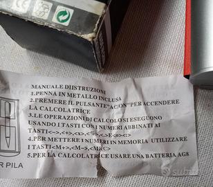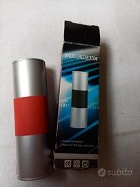 Calcolatrice tascabile con penna in metallo Magic calculator, in comodo formato richiudibile. Mai usata, con scatola originale e istruzioni.