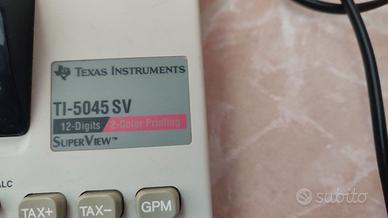 Calcolatrice Vintage Texas Instruments TI-5045 SV, con tastiera comoda, tasti grandi e display luminoso, completa di cavo originale per l'alimentazione elettrica.
