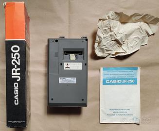 - Casio JR 250: oggetto degli anni 80. La calcolatrice è in splendide condizioni estetiche e corredata della scatola originale, della protezione da polvere in plastica e del manuale d'uso come da foto. A seguito di mia prova si è accesa ed ha eseguito i calcoli senza alcun problema, non ho potuto provare la stampa per mancanza di rullo di carta ed inchiostro - 20€