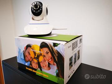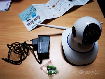 camera HD compatibilecon protocollo ONVIF , con allegato un manuale semplice per la sua configurazione, compatibile android e iphone, wifi, scatola manuali e power, possibilità fissaggio a muro, omnidirezionale. non spedisco solo consgena a mano