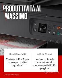 ALIMENTA LE TUE FUNZIONALITÀ: lascia che la stampante multifunzione wifi PIXMA TS7450I semplifichi il tuo carico di lavoro con la sua tecnologia ADF (alimentatore automatico di documenti), permettendoti di copiare e scansionare facilmente più pagine senza la necessità di rimuovere o ricaricare i documenti.