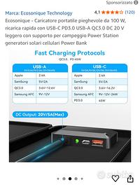 Ecosonique - Caricatore portatile pieghevole da 100 W, ricarica rapida con USB-C PD3.0 USB-A QC3.0 DC 20 V leggero con supporto per campeggio Power Station generatori solari cellulari Power Bank