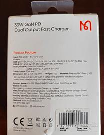 Caricabatteria Mcdodo GaN da 33W con doppia porta USB A-C per una ricarica rapida.