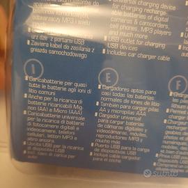 Caricabatteria universale per tutte le batterie agli ioni di litio comuni, uscita USB per ricarica dispositivi, cavo ricarica auto.
