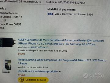 Vendo causa inutilizzo AUKEY Caricatore da Muro Portatile a 4 Porte con AiPower 40W, Caricatore