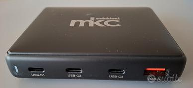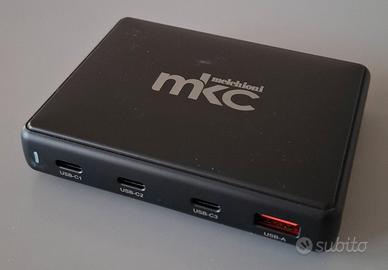 PRODOTTO NUOVO CON SCATOLA •Potenza Massima di 140W – Uscita totale combinata fino a 140W per caricare simultaneamente laptop, tablet, smartphone e altri dispositivi USB. •3 Porte USB-C + 1 USB-A – Supporta ricarica ultra-rapida: USB-C1 fino a 140W, USB-C2 fino a 100W, USB-C3 fino a 65W, USB-A fino a 30W. •Chip di Sicurezza Intelligente – Protezione integrata contro surriscaldamento, sovraccarico, sovracorrente e cortocircuiti per una ricarica sicura. •Ideale per Tutti i Dispositivi – Compatibile con MacBook Pro, iPhone, iPad, Samsung, Xiaomi, console da gaming, power bank e altro ancora. •Input Universale 100-240V – Perfetto per i viaggi, grazie al supporto di tensioni internazionali e alla tecnologia GaN compatta ed efficiente. Questo caricatore USB GaN da 140W rappresenta la soluzione definitiva per chi desidera potenza e versatilità in un unico dispositivo compatto. Dotato di tre porte USB-C e una porta USB-A, consente la ricarica simultanea di più dispositivi con una potenza totale fino a 140W. La porta USB-C1 supporta l’erogazione fino a 140W (28V 5A), ideale per caricare rapidamente anche laptop di grandi dimensioni come MacBook Pro. Le porte USB-C2 e C3 offrono rispettivamente fino a 100W e 65W, mentre la porta USB-A garantisce una potenza massima di 30W, perfetta per dispositivi meno energivori. Grazie alla tecnologia GaN (nitruro di gallio), il caricatore è più efficiente, compatto e meno soggetto a surriscaldamento rispetto ai caricatori tradizionali. Il chip intelligente integrato controlla costantemente la temperatura, la corrente e la tensione, offrendo una protezione completa per tutti i dispositivi collegati. L’ampia compatibilità lo rende perfetto per smartphone, tablet, laptop, console, auricolari e altri dispositivi USB. L’input universale 100-240V e la struttura solida e portatile lo rendono ideale anche per l’utilizzo in viaggio. Cavetto di alimentazione con spina 10A incluso