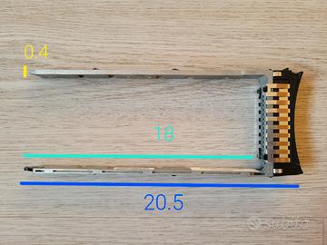 Vendo 26 carrelli/slitte in metallo per hard disk o SSD da 2.5", adatti a server IBM. Non conosco i modelli esatti né la compatibilità con altri sistemi o rack. dimensioni in cm come da ultima foto + spessore ~1.6cm. La parte frontale è in plastica con sportello e meccanismo per rimozione rapida del disco. I carrelli sono etichettati in modo diverso, alcuni riportano “SAS 12GBPS 2TB 7.2K”, altri “SAS 12GBPS 400GB”. Prezzo 3€ l’uno, sconto se acquistati in quantità. posso anche includere delle viti torx di sicurezza. Preferenza Spedizione con InPost. NO Poste Italiane. Per ulteriori informazioni contattatemi pure.