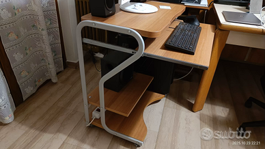 Carrellino porta pc dotato di ruote bloccanti, mensola per tastiera estraibile. Comodo, in legno.