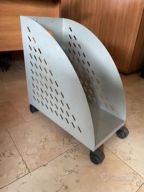Carrello porta pc con ruote, in metallo grigio chiaro come da foro