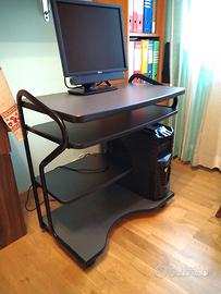 Vendo carrello porta PC antracite/nero, con piano per video, piano estraibile per tastiera, piano porta stampante e base porta PC, quattro ruote pivotanti.