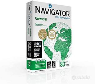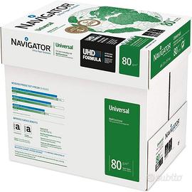 Navigator Universal Carta Premium per ufficio, Formato A4, 80 gr, Confezione da 15 risme da 500 Fogli Grammatura 80 gr/mq formato A4 (210 mm x 297 mm) Peso complessivo spedizione 38.1 kg Punto di bianco: CIE 169 Certificazioni: FSC ed ECOLABEL Spedizione Gratis