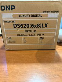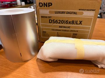 Bobina cominciata di carta metallica Luxury metallic per dnp ds620 ideale e bellissima per stampe 15x20 in bianco e nero Quasi introvabile in Italia Scatola venduta in un unica bobina da 200 copie , disponibili ancora piu di 170 copie Pagata quasi 200 euro vendo a 150 euro poco trattabili per inutilizzo