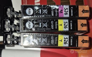 Causa rottura stampante vendo set di 9 cartucce di inchiostro CANON originali di cui 6 in confezione originale chiusa (scatola) e 3 in scatola aperta sigillati (come da foto). In particolare: 2 PGBK-525; 1 BK-526, 3 CLI-526 Y, 2 CLI-526 M, 1 CLI-526-M. Se interessati ai pezzi di ricambio posso anche dare la stampante guasta (non si accende, probabile guasto scheda madre). Il materiale è disponibile ad Albano Laziale