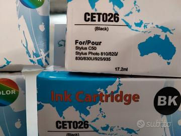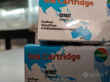 N.2 cartucce (nero) e N.2 cartucce (colore), per stampanti Epson Stylus Photo 810-820-830-830U-925-935. Compatibili, sostituiscono le TO26 e TO27 (serie pesciolino Nemo), imbustate sotto vuoto. Acquistate nel 2023 con altre, utilizzate su stampante Epson 830U fino a quando ha smesso di funzionare.