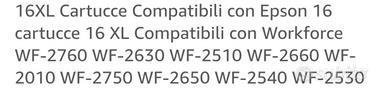 Vendo per causa passaggio a nuova stampante Epson WorkForce WF-2910,intero blocco di cartucce compatibili per stampante Epson WorkForce come da foto illustrata io le usavo per una WF-2630 senza mai un problema: