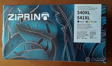 Cartucce nuove di inchiostro 540XL e 541XL della Ziprint, cartuccia di inchiostro rigenerata per stampante Canon serie Pixma vari modelli; MG2100, MG2140, MG2150, MG2155, MG2200, MG2250, MG3100, MG3150, MG3155, MG3200, MG3250, MG3350, MG3500, MG3550, MG3600, MG3650, MG4100, MG4150, MG4200, MG4250, MX374, MX375, MX390, MX395, MX430, MX432, MX434, MX435, MX455, MX475, MX515, MX520, MX525, MX530, MX535, TS5150 e TS5151. Rendimento circa 600 fogli per il B/N e circa 400 fogli per il colore, nuove non aperte, nella loro confezione originale.