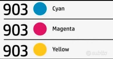Cartucce originali HP nuove ciano, magenta e giallo. Vendo perché ho acquistato per errore, la mia stampante supporta la versione 903 XL senza packaging di cartone
