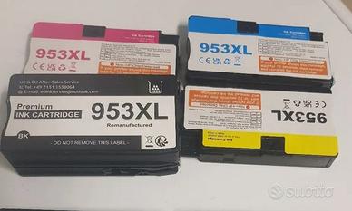 Cartucce 953 come da foto con ancora cariche inchiostro in blocco Marca BUFFETTI n.4 ciano magenta giallo e nero xl