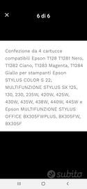cartucce ricaricabili Epson 1281/1282/1283/1284 con chip autoresettante già riempite 4 colori da 100ml l'uno per le ricariche più siringhe e aghi. Screenshot delle stampanti compatibili. Tutto a 25€ poco trattabili.