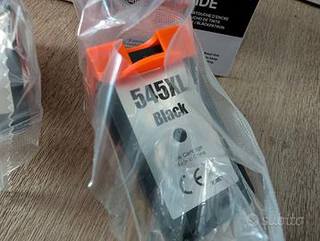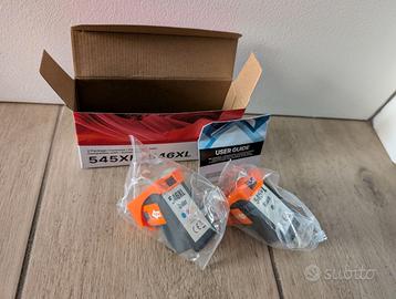 Cartucce compatibili HALLOLUX per stampanti Canon. Modello cartucce: 545 XL e 546 XL (nero e colore). La busta in plastica del nero è stata aperta per sostituire la cartuccia nella mia stampante. Vendo per errore nell'acquisto (gennaio 2026 - non compatibile con la mia stampante), quindi la busta in plastica della cartuccia nera è aperta, ma la cartuccia è nuova e mai utilizzata. Cartuccia colore nuova e sigillata.