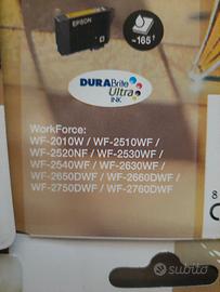 Cartucce per stampanti Epson nuovi mai aperti scadenza 09/2025. Gli inchiostri DURABrite Ultra sono inchiostri a pigmenti che offrono stampe resistenti all'acqua, alle sbavature e allo scolorimento, ideali per documenti e foto di qualità professionale. Sono anche resistenti agli evidenziatori e all'asciugatura rapida, permettendo la stampa fronte/retro.