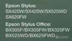 Vendo cartucce stampante EPSON SX620FW sia nero che a colori. Alcune sono originali e altre sono compatibili. Sempre usate per stampare foto ad alta qualita' e mai avuto nessun problema. Le cartucce sono nuove e sigillate. Di seguito: