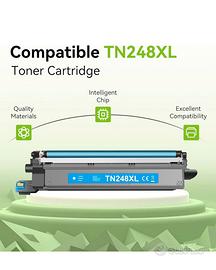 Set di 5 toner compatibili Brother TN248XL con chip integrato, ideali per stampanti laser Brother. Offrono stampe di qualità con un ottimo risparmio rispetto agli originali.