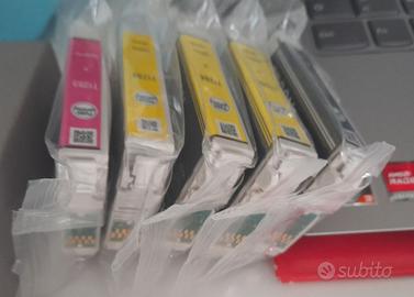 3 CARTUCCE DEL GIALLO T1284, 1 NERO T1281, MAGENTA T1283 mai usate, devo venderle x cambio stampante.