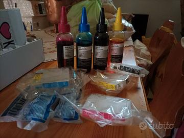 vendo n 4 cartucce ricaricabili + n 4 flacconi colori da 100 ml l'una + n4 siringhe compatibile x stampante epson xp 225 il tutto nuovo mai usati