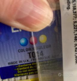 Cartuccia originale Epson T014. Colori: Ciano, Magenta, Giallo (indicati dai cerchi colorati)