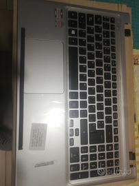 Case completo con tastiera retroilluminata e touch pad colore argento per Acer Aspire V51-571 V5 571Pg. La tastiera presenta alcuni tasti in lingua spagnola. Prodotto nuovo.
