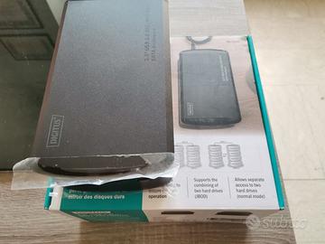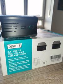 Case NUOVO ancora con pellicola, solo testata l'accensione dei dischi. Vendo con un disco da 1 TB e un disco da 500 GB. Il case ha una ventola di raffreddamento incorporata. I dischi non sono nuovi ma perfetti al test. Protegge i vostri dati importanti dalla perdita tramite il mirroring dei dischi rigidi. - Consente il mirroring del disco rigido per garantire l’affidabilità - Supporta la combinazione di 2 dischi rigidi (JBOD) - Consente l’accesso separato a 2 dischi rigidi (modalità normale) L’alloggiamento DIGITUS® da 3,5” USB 3.0 SSD/HDD RAID SATA è ideale per proteggere dalla perdita i vostri dati più importanti. Tramite la funzione RAID1 è possibile eseguire il mirroring dei dati; in questo caso, i dati vengono archiviati in modo identico su entrambi i dischi rigidi. La funzione RAID0 viene utilizzata per partizionare i dati in blocchi tra i due dischi rigidi. L’alloggiamento offre anche la funzione JBOD, che consente di combinare due dischi rigidi in un unico disco rigido. Nella modalità normale, i due dischi rigidi vengono visualizzati come unità separate. La configurazione delle singole modalità avviene tramite DIP switch nell’alloggiamento. La porta USB 3.0 dell’alloggiamento offre una trasmissione dati veloce tra sorgente e alloggiamento. L’alloggiamento RAID può anche essere collegato a un NAS o a un router con porta USB e funzione NAS, consentendone l’utilizzo anche all’interno della vostra rete. Specifiche: Archiviazione numero di dispositivi di archivio supportati: 2 Dimensione del dispositivo di archiviazione: 3.5" Interfacce dell'unità di archiviazione supportate: SATA, Seriale ATA II, Serial ATA III Livelli RAID: 0, 1, JBOD Capacità massima di memoria: 4 TB