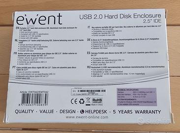 Ewent EW7042 Case Esterno in alluminio per Disco Rigido HD 2.5" IDE, connessione USB 2.0. Solo consegna a mano.