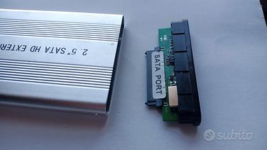 Case esterno in alluminio per Hard Disk SATA 2.5". Attacco USB 2.0 per computer e SATA per Hard Disk