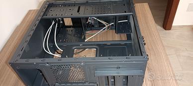 Case per pc desktop usato, manca coperchio frontale dove si monta il lettore CD/DVD e i due coperchi posteriori per la scheda video e una scheda esterna. Supporta motherboard ATX e mATX, ha 3 porte USB, di cui una 3.0 e un card reader multi formato.
