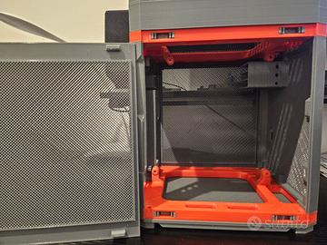 Case per scheda mini ITX completamente stampato in 3D con materiale PETG. il case supporta l'installazione di una scheda mini ITX, la possibilità di alloggiare una scheda PCIe per estensione raid/sas o una gpu versione slim. Nella parte alta è predisposto per un alloggiamento di una ventola per estrazione da 140mm. Alloggia 3 dischi da 2,5" e un alimentatore SFX/SFX-L. Per inserire un FlexATX è necessario stampare un accessorio per poterlo alloggiare. E'possibile impilare dei porta dischi da 3.5" con 5 bay disponibile su richiesta. Posso inviarvi le foto del mio server attualmente in funzione con 11 dischi per vedere come è stato realizzato.