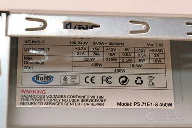 Case PC + Alimentatore 450 Watt La parte in plastica posteriore del case può anche essere rimossa. Alimentatore e lettore floppy incluso.