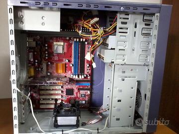 Vendo Case PC Desktop con relativa scheda madre (completo di processore e relativa ventola e dissipatore), nr 2 lettori dvd, una tastiera PS2, un alimentatore ATX e una scheda video. Il CASE è stato modificato come si può notare dalle foto, in modo da poter monitorare all’interno. Scheda madre è da testare (NON E' STATA VERIFICATA LA SUA FUNZIONALITA' QUINDI DA TESTARE. NON SI ASSICURA LA FUNZIONALITA’). Lettori e alimentatore funzionanti. (Non è compreso HDD e quindi sistema operativo.