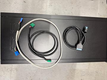 Completo di ventola, hub integrato nel case (2 porte USB A 2.0, 2 porte USB A 3.2 GEN 1, ingresso MIC e uscita CUFFIE, lettori SD, MS e CF) e cavi per il collegamento di TUTTE le porte, il tasto di accensione e la ventola (3 PIN) alla scheda madre.