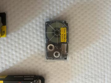 Vendo cartuccia di stampa per etichettatrice casio nero su gialo Largezza nastro 12mm Nuove ancora imballate. 15 euro cad.
