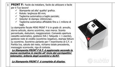 Per chiusura attività, vendo cassa piu stampante ,acquistata a novembre 2025 (quindi nuovissima).