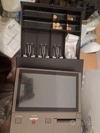 Comprende monitor touchscreen da 15”, cassetto portamonete con chiave e porta USB laterale.