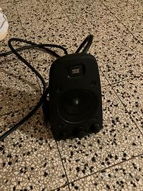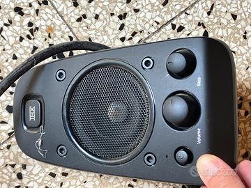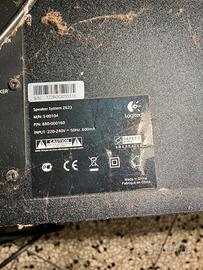Casse Logitech Z623. Sistema audio: 2.1 canali, un solo altoparlante. La cassa funziona, a volume massimo fa qualche scricchiolio.